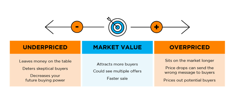 To better understand the potential downsides of over or underpricing your house and the benefits of pricing it at market value, take a look at the chart below: